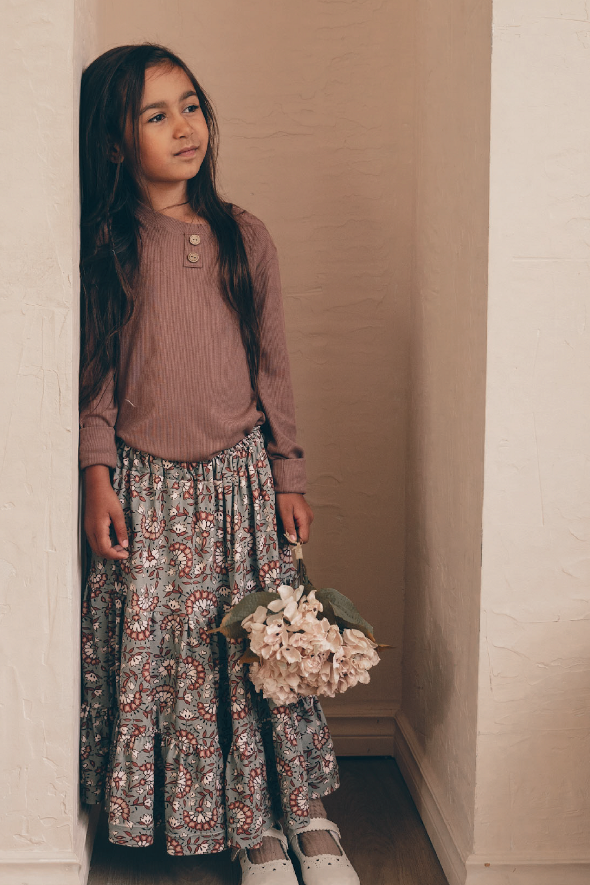 In harmony with the environment with its dull autumnal colors and its “peasant chic” style. Pair it with one of our bamboo ribbed basics or the new sweaters to stay warm. With its loose cut and the softest material, this dress will make your mini shine while giving it a boho-chic look.