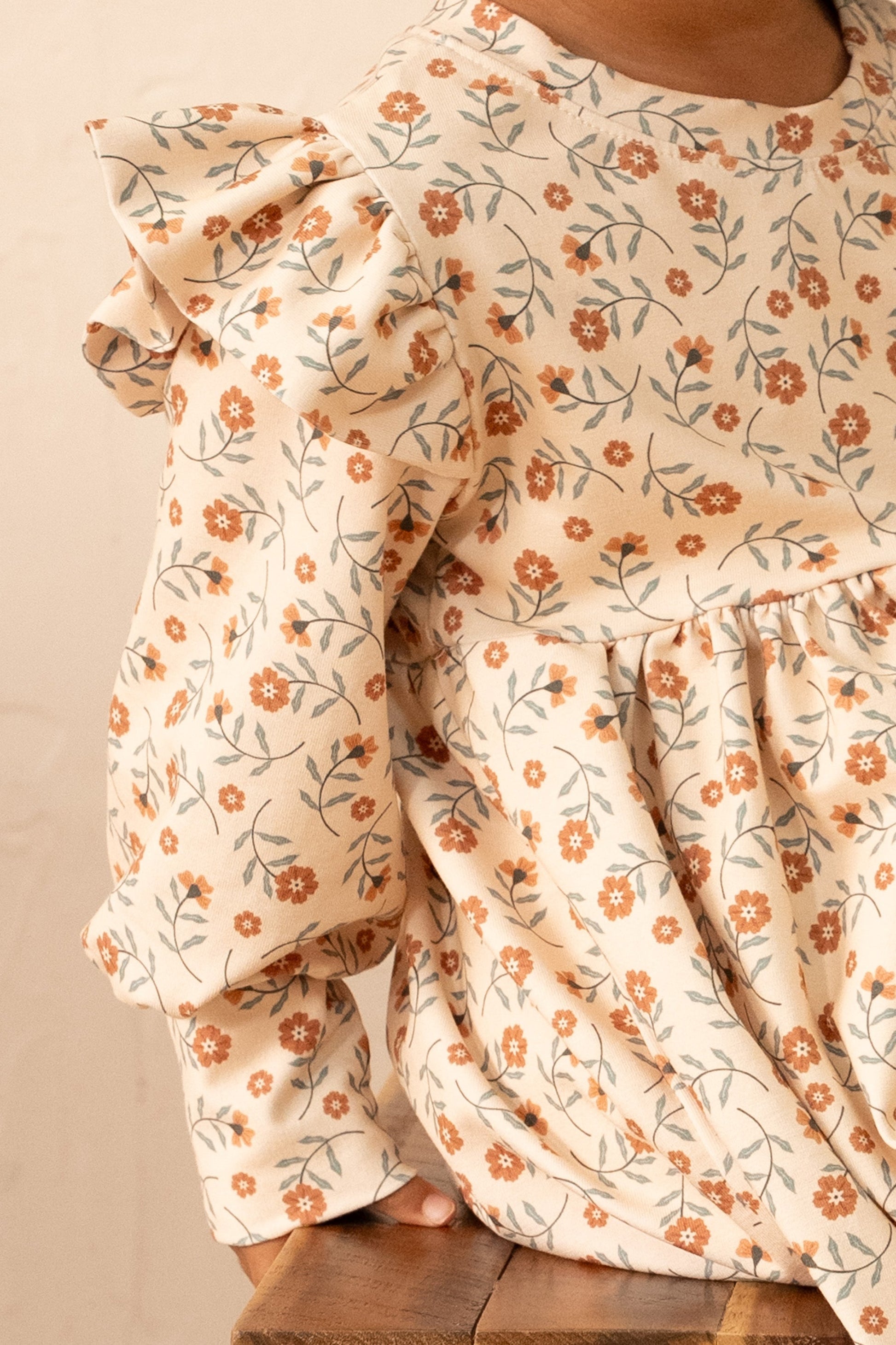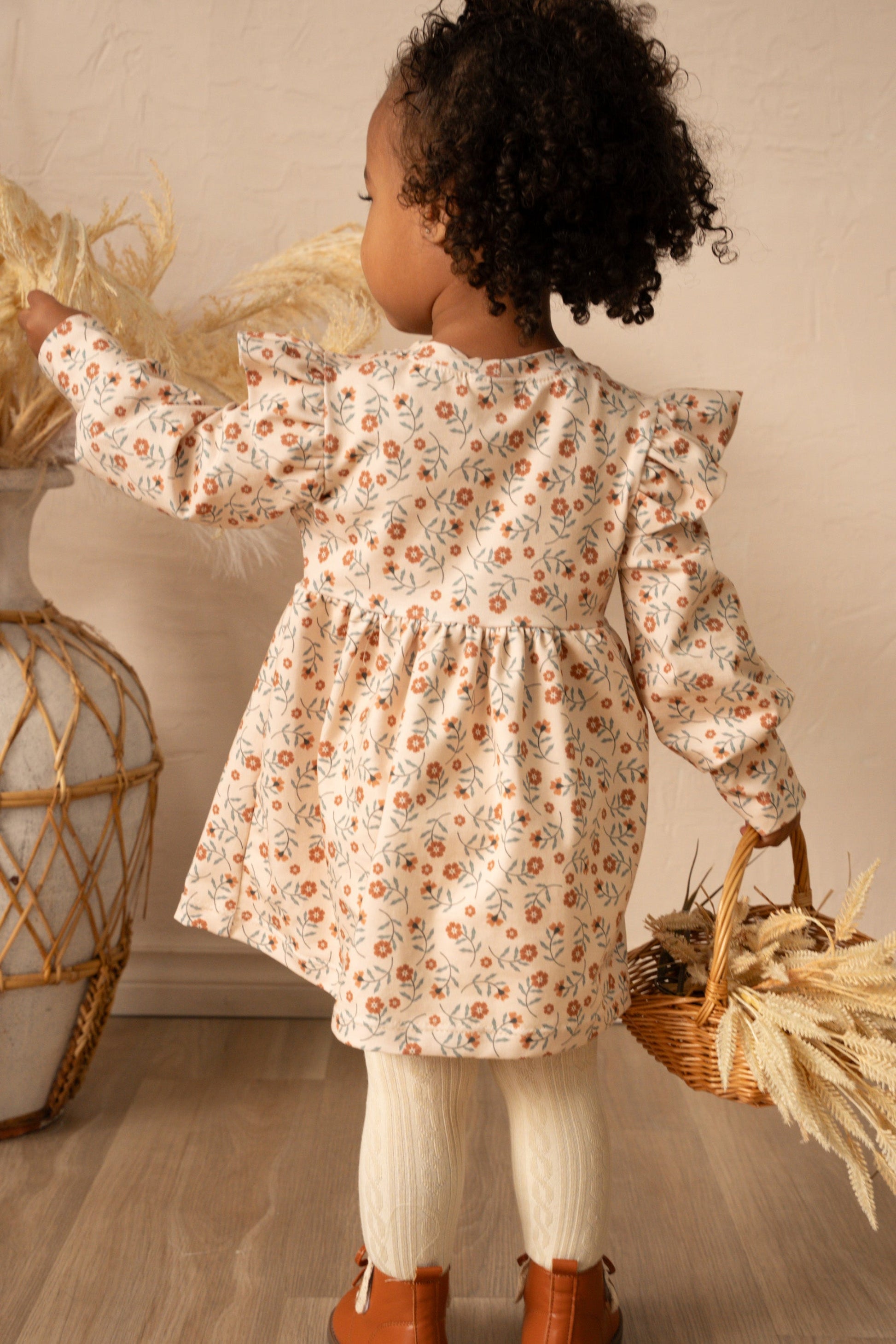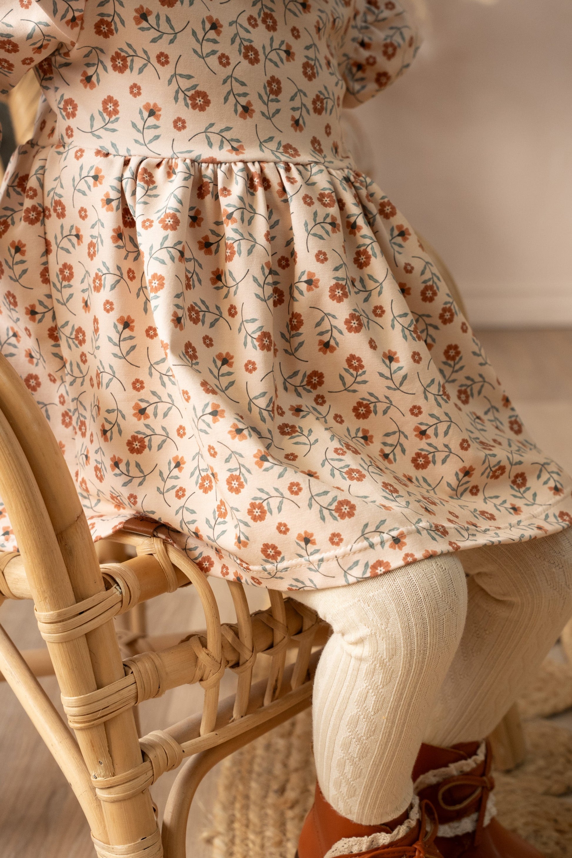 In harmony with the environment with its dull autumnal colors and its “peasant chic” style. Pair it with one of our bamboo ribbed basics or the new sweaters to stay warm. With its loose cut and the softest material, this dress will make your mini shine while giving it a boho-chic look.