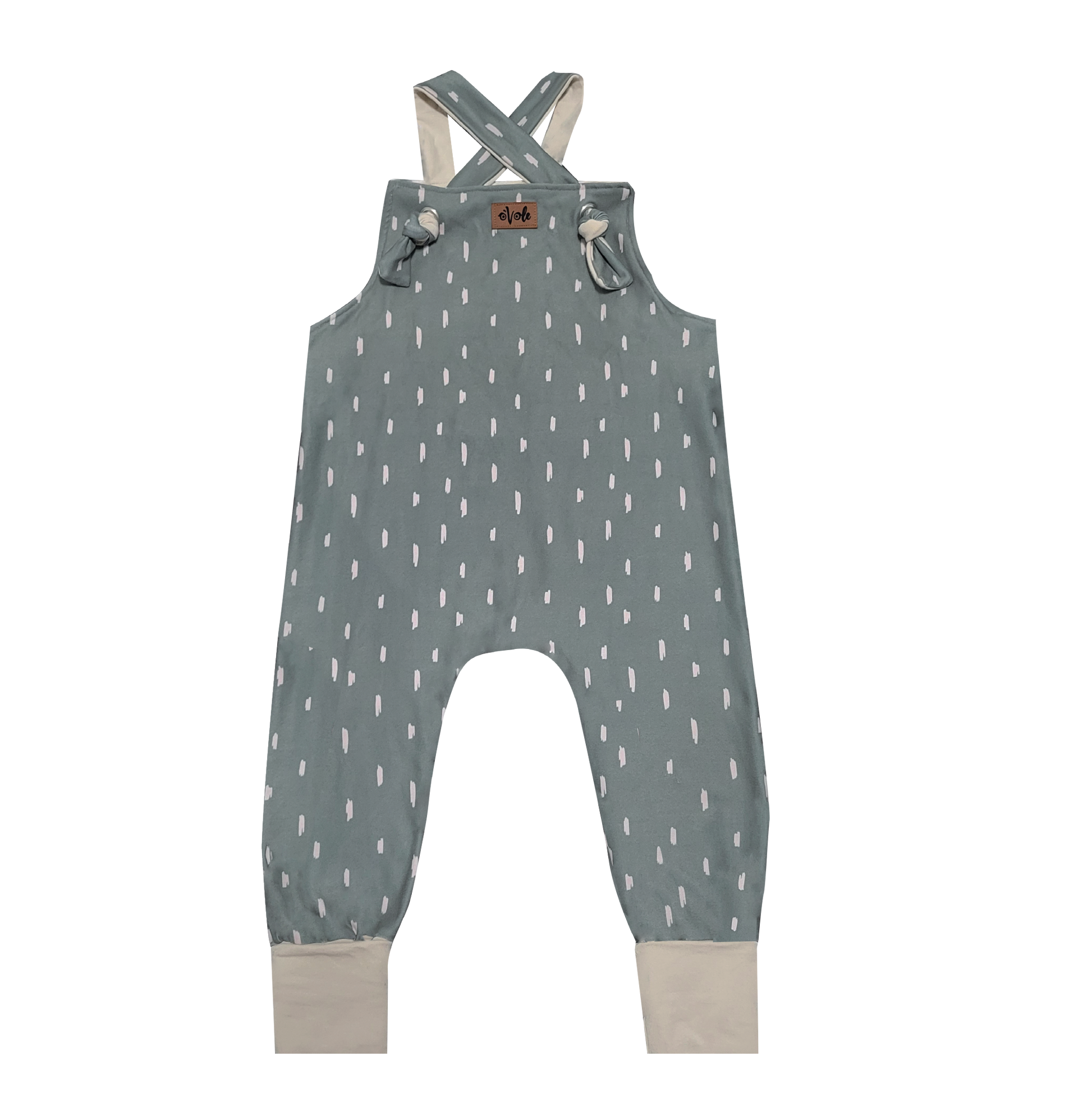 Evolutionary romper printed with a minimalist design in a soft sage green.
