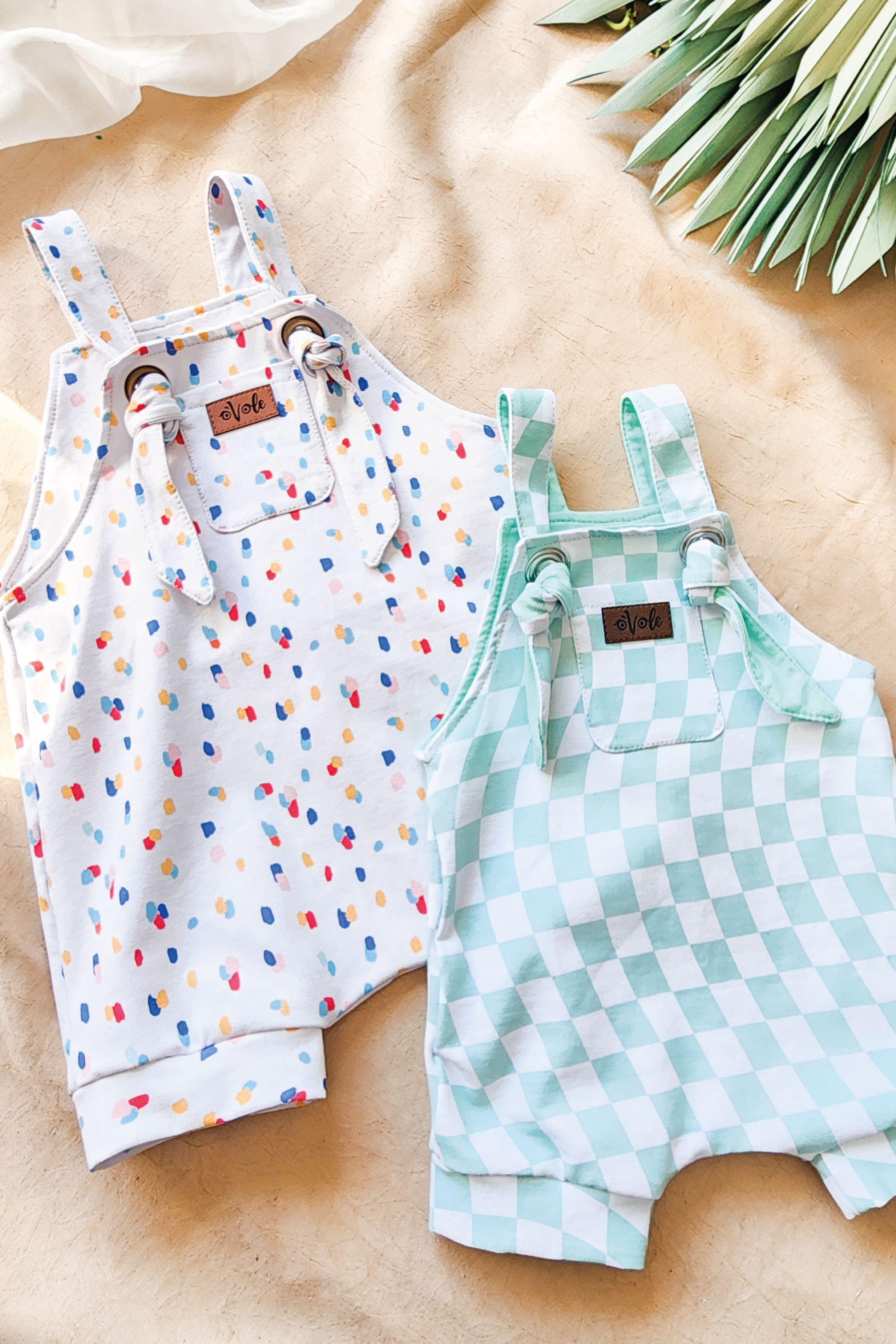 These summer harem cut overalls have adjustable straps and a real pocket. Give your mini a casual style while allowing it to move easily.