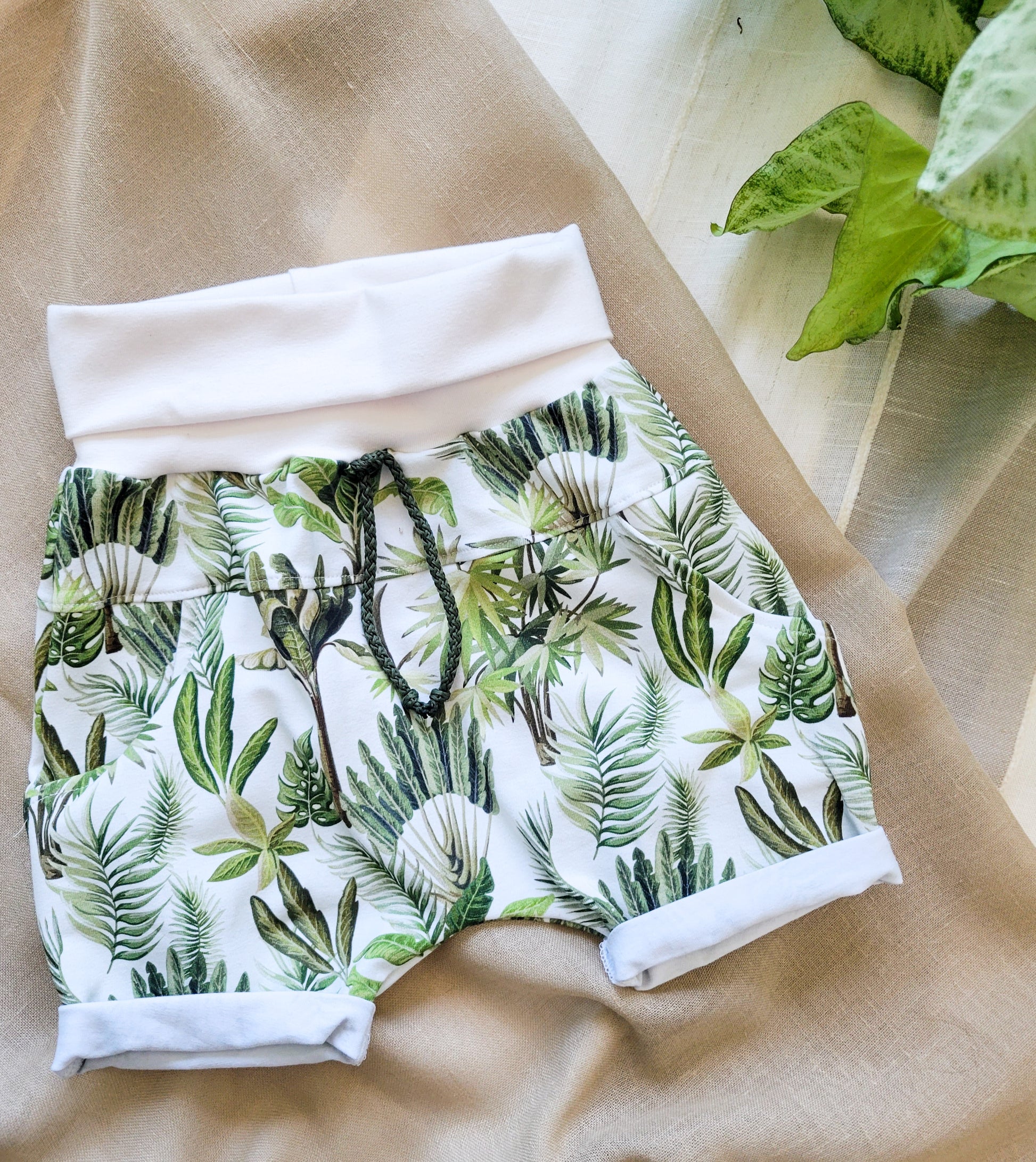 Harem cut shorts with adjustable adjustable waistbands, you just have to roll and unroll to adjust. Perfect for washable diapers or even without. Give your mini a casual style that will allow it to move easily. Equipped with real pockets.