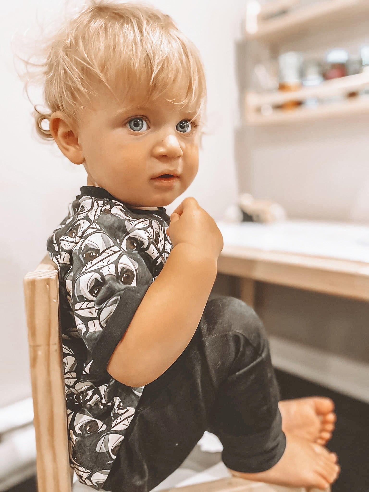 ⚜️ Ethically made in Quebec, with soft and stretchy fabrics, and so that they adjust to your child as they grow .